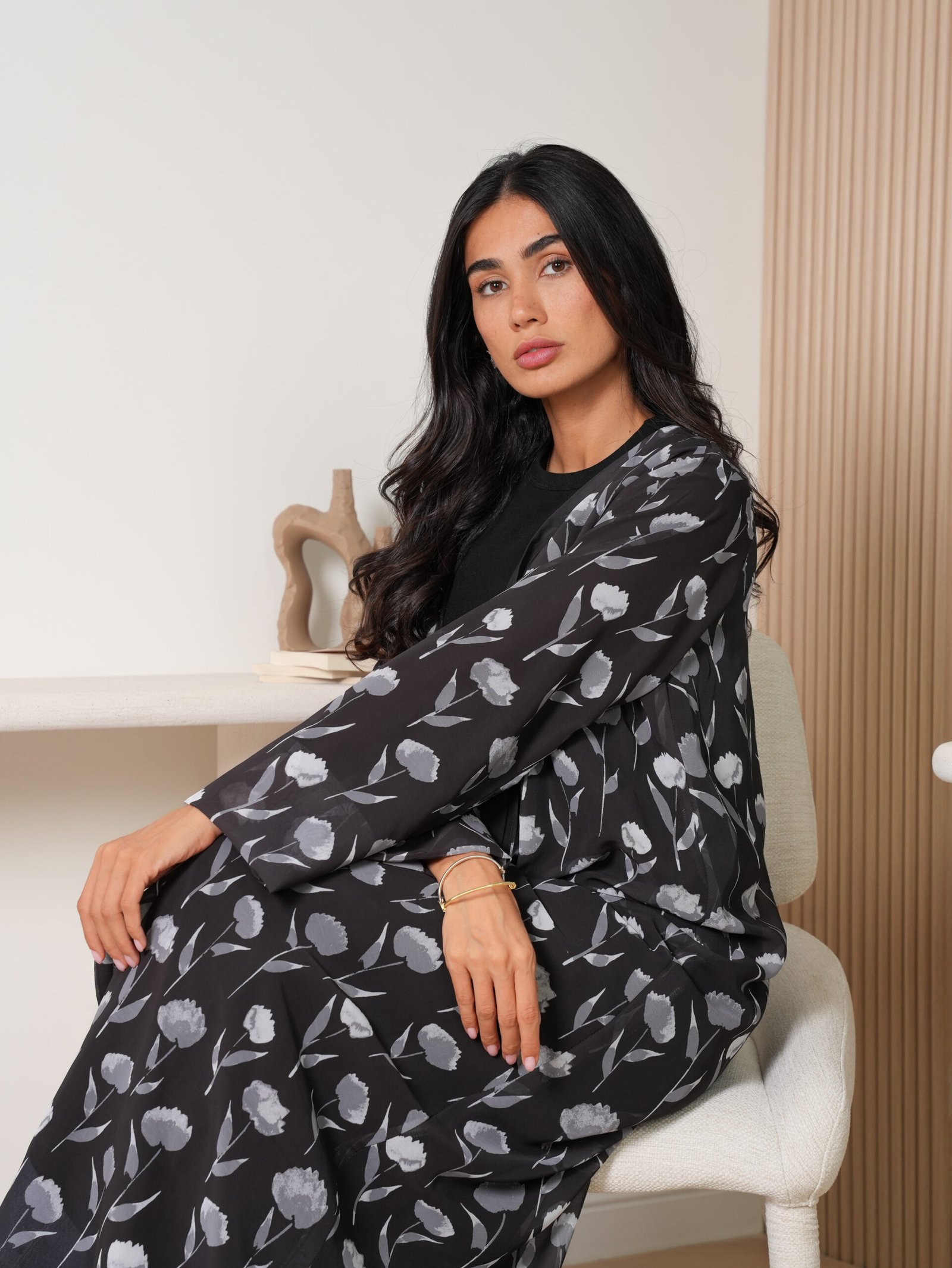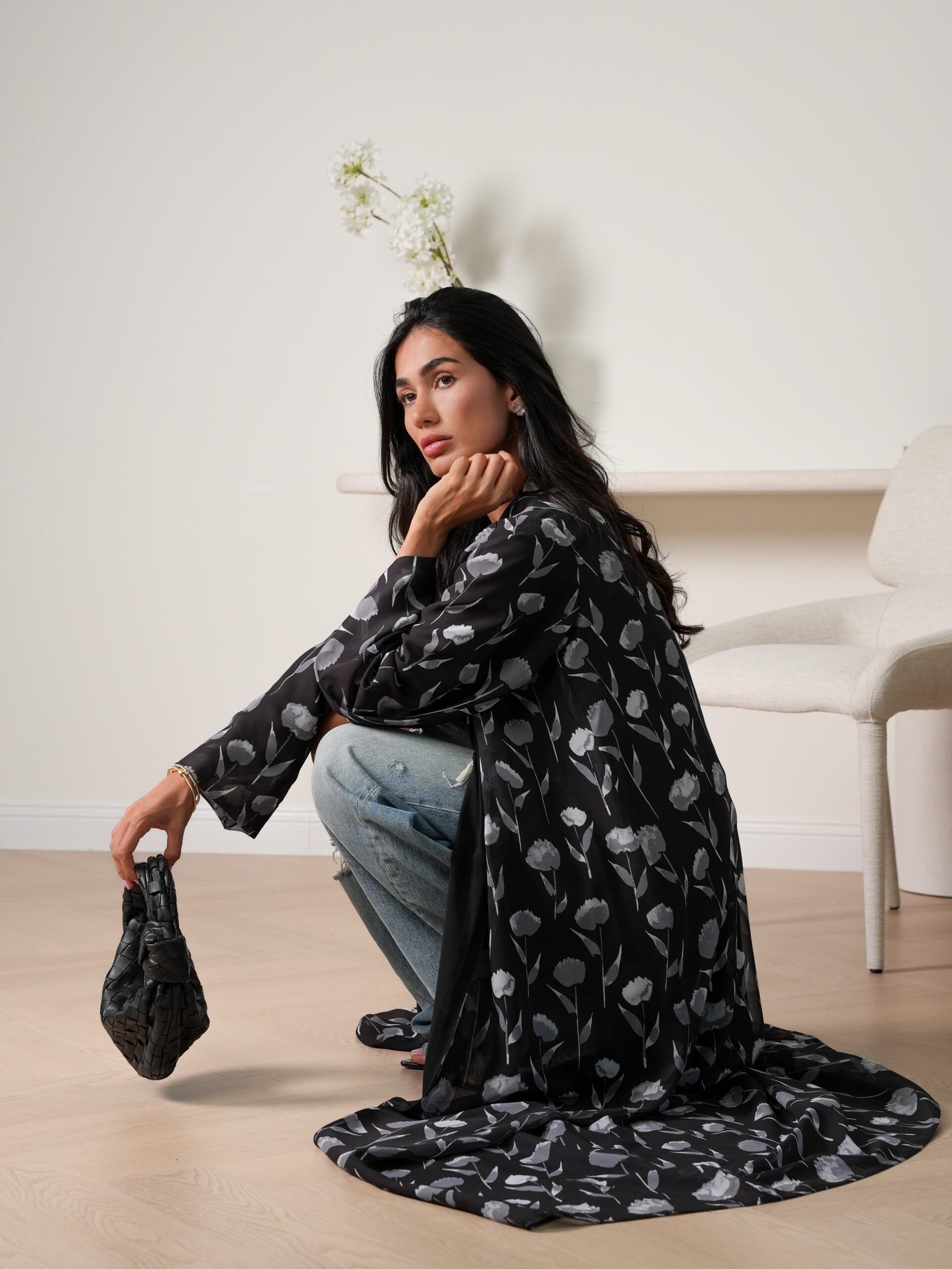 العبايه + الشيلة ( اللون اسود او رمادي)