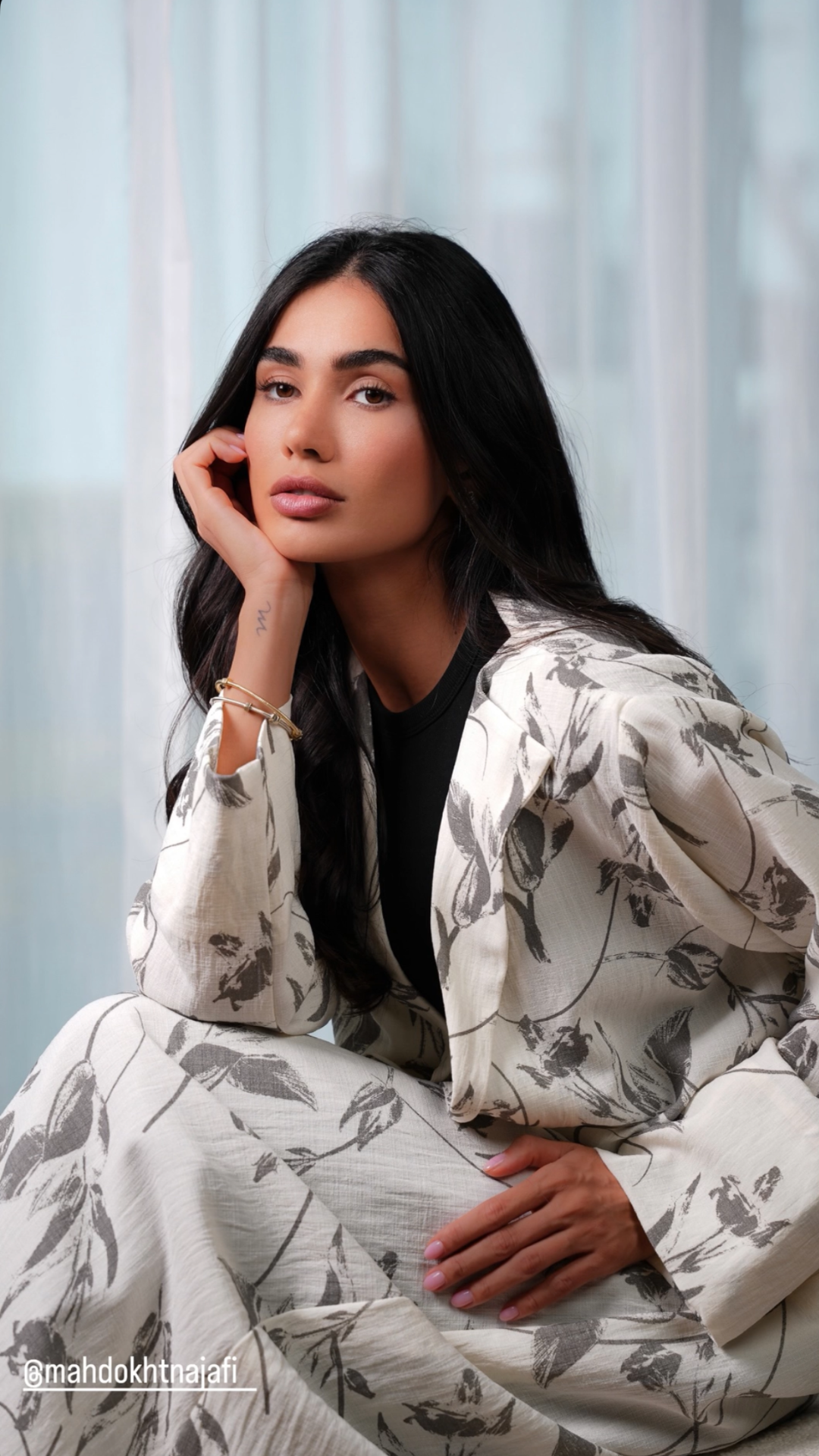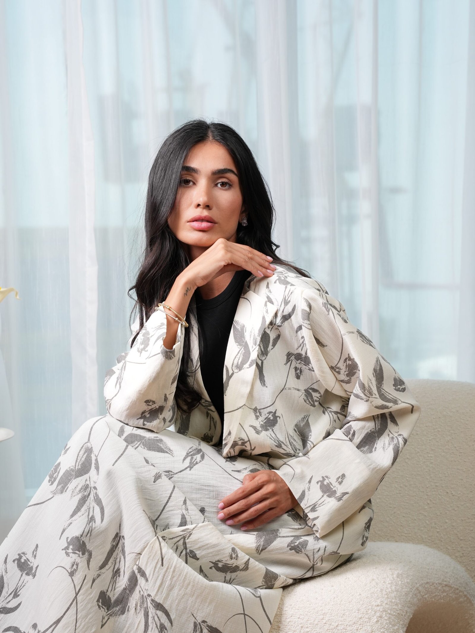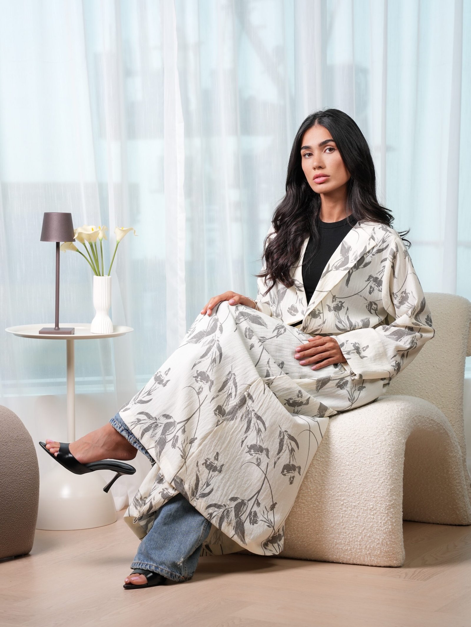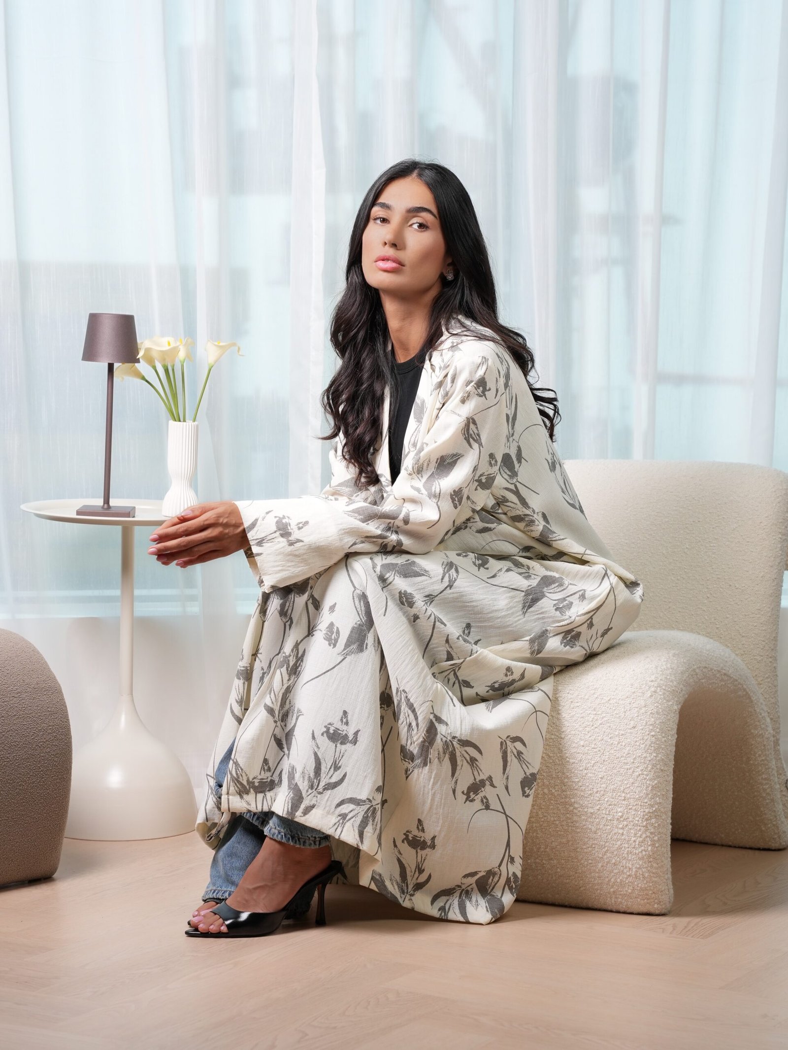 العبايه + الشيلة ( اللون ابيض او الرمادي)